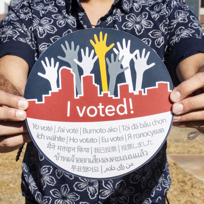 lol博彩 student, Zain Dada's sticker design was chosen as the winner of the Auraria Votes! and Denver Clerk and Recorder's "I Voted!" sticker competition. Zain's design will be displayed on over 250,000 Denver County ballots for the 2024 General election.