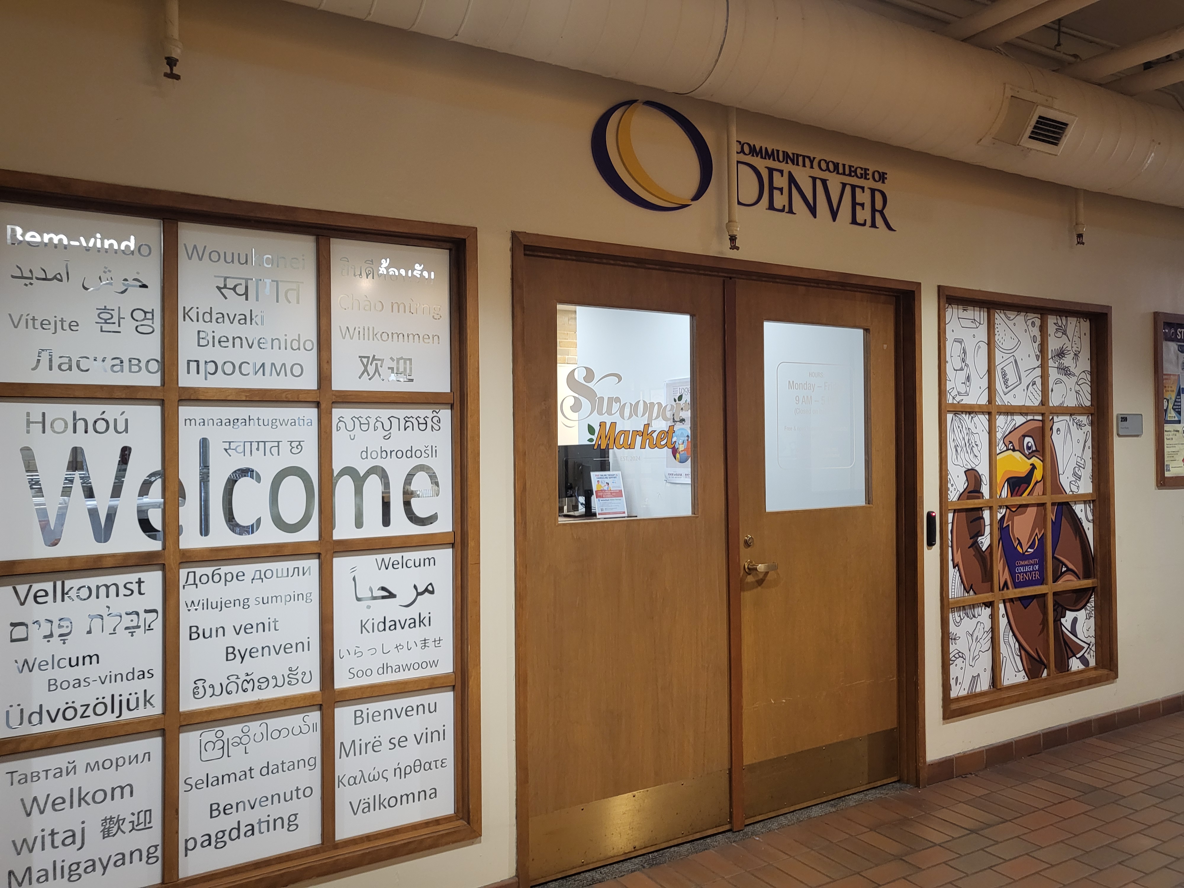 The Community College of Denver Resource Center provides support to students in crisis. We know that food insecurity is just one symptom of a bigger problem. When students come to our office they get access to the Swooper Market and they can get connected with a case manager for other things like housing insecurity, legal concerns, childcare support, transportation support, and clothing.